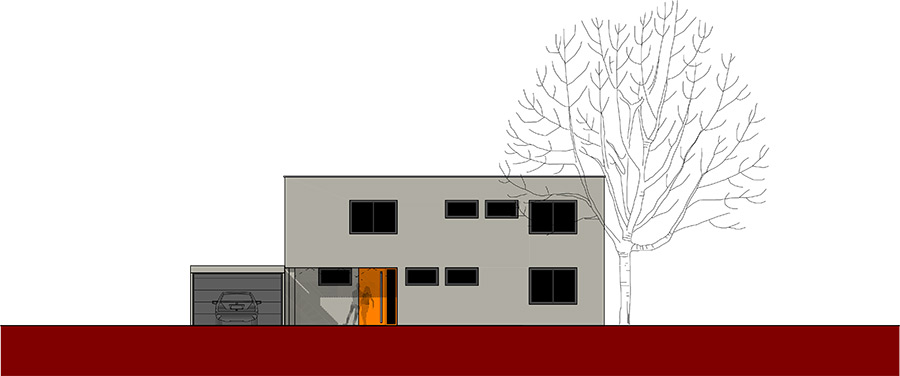 In strenger, kubischer Form entsteht hier ein nichtunterkellertes,