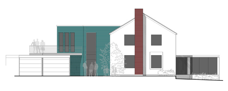 Umbau eines 50-Jahre-Einfamilienhauses durch eine 2-geschossige Erweiterung zu einem teilgewerblichen Objekt.